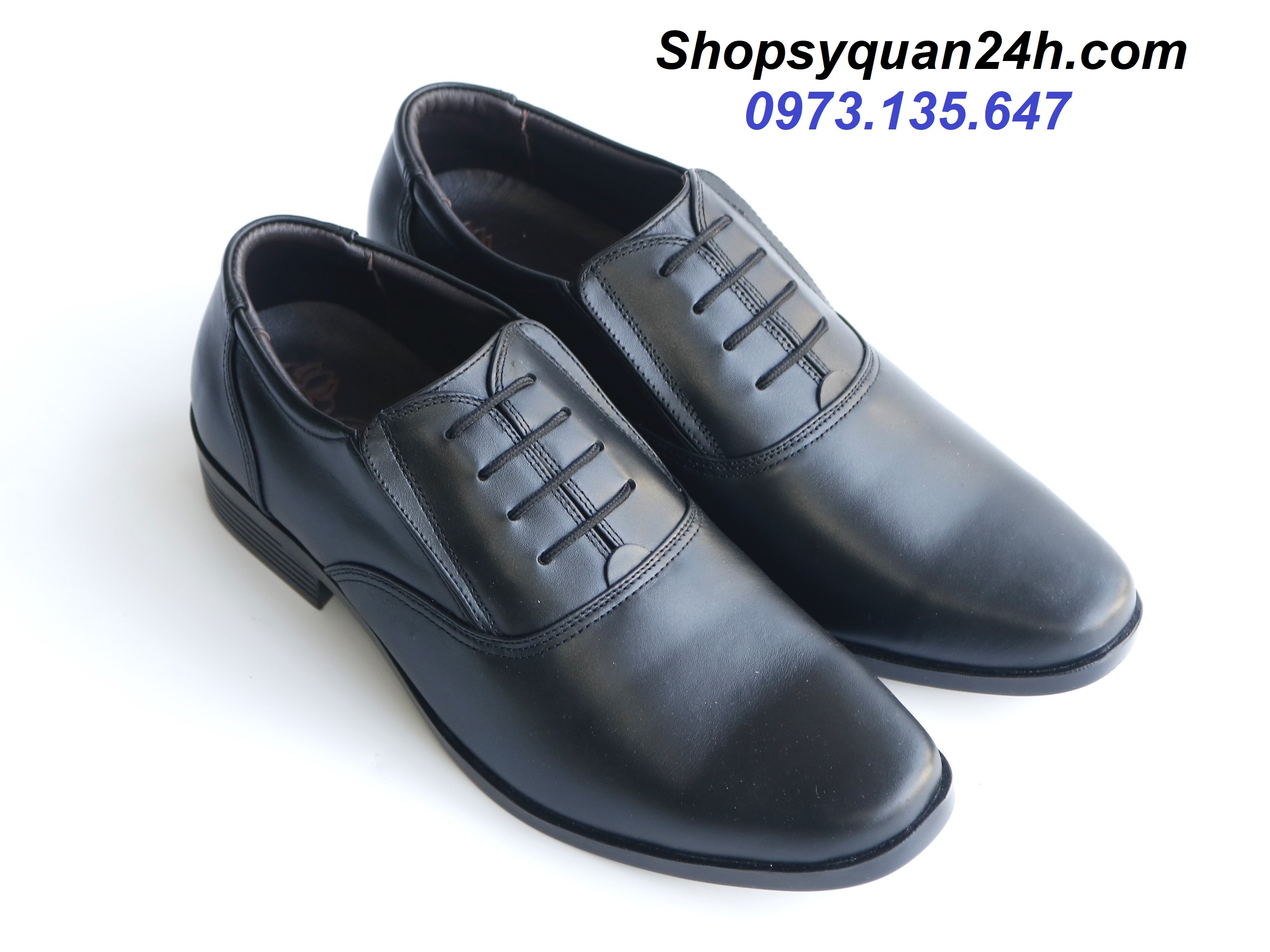 - Kiểu đặc trưng của giày cấp tướng- không cột dây- không viền ngang trước mũi chân.