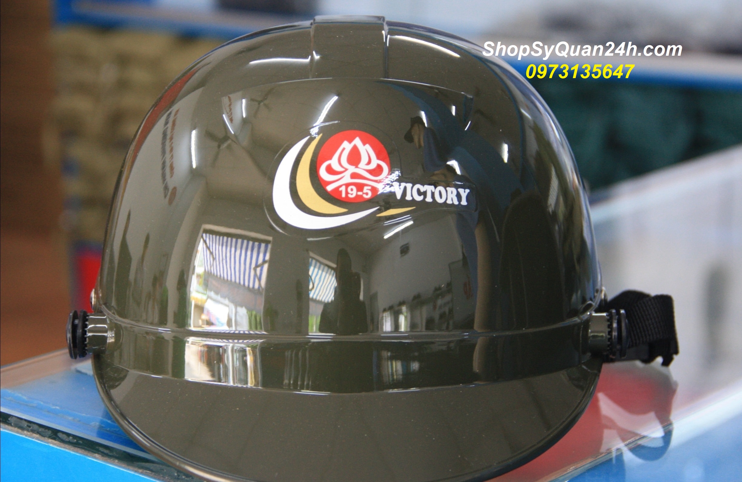* Phía trước mũ có logo hoa sen VICTORY